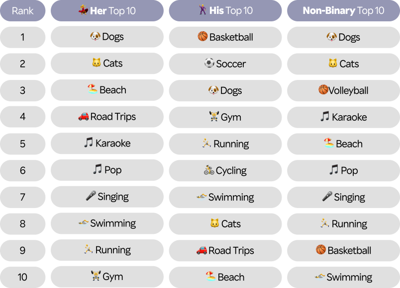 Our users may have different interests, but sports and animals are universally loved!